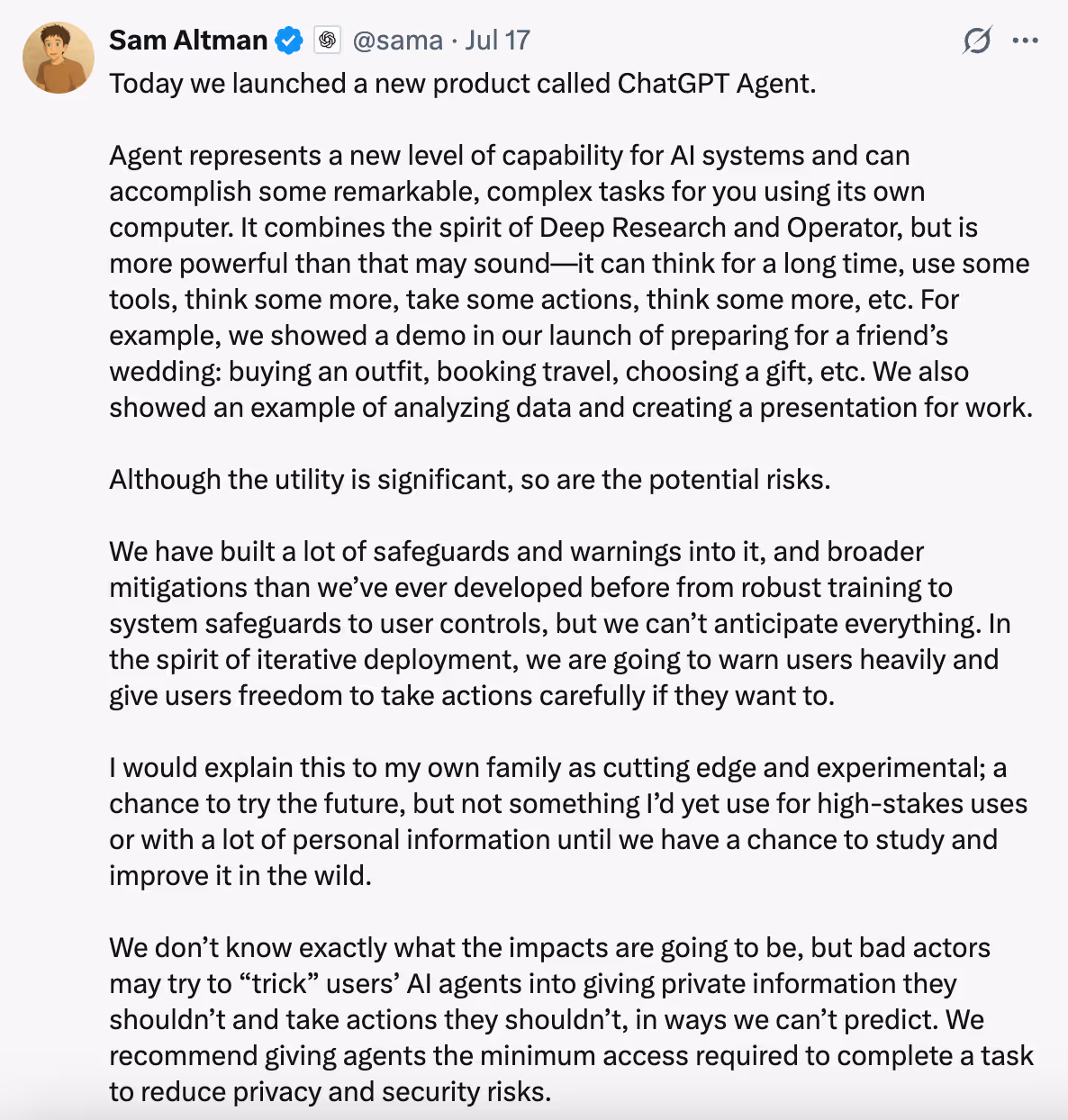 But here’s the kicker: as convenient and groundbreaking as this sounds, granting an AI this much autonomy isn't without significant risks. Even OpenAI CEO Sam Altman admits it's "cutting edge and experimental." Translation: Proceed with caution, really.